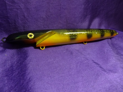 ID: S9NakedPerchFineGoldGlitter Size: 9" Sledge (weighted) Bare Bones Custom Pattern: Naked Perch Fine Gold Glitter Contact for availability |